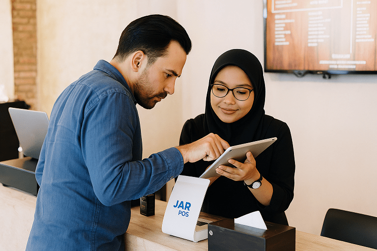 Anda tertarik dan ingin memulai menggunakan aplikasi kasir restoran berbasis cloud tapi bingung apa aplikasi kasir terbaik yang cocok dengan bisnis Anda? Mulai langkahmu dengan menggunakan JAR POS. JAR POS adalah aplikasi pos restoran yang telah dipercaya oleh lebih dari 40.000+ pemilik usaha di Indonesia. JAR POS telah memiliki berbagai pengalaman dengan bisnis makanan dengan menyediakan berbagai solusi operasional, administratif, pertumbuhan usaha, hingga promosi. Dalam satu aplikasi, kami menyediakan berbagai solusi. Mulai gabung dengan ribuan merchant dengan pakai JAR POS, coba sekarang!